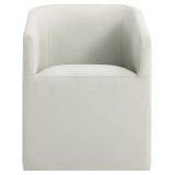 Manhattan Comfort Anna Round Modern Dining Chair with Arms, Head-to-Toe Faux Leather Upholstered Accent Armchair with Plastic Foot Padding, Set of 1, Stone Grey