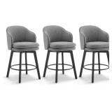 (26). Counter Height Barstools 26 inch Upholstered Swivel Bar Stools with Back for Kitchen Island,Set of 3,Dark Grey Fabric