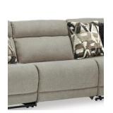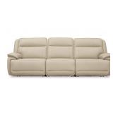 (50) Ashley Furniture Double Deal 3-Piece Dual Power Leather Reclining Modular Sofa - Almond