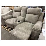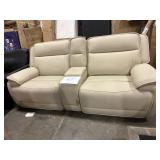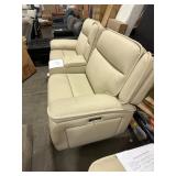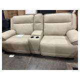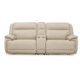 (49) Ashley Furniture Double Deal 3-Piece Dual Power Leather Reclining Modular Loveseat with Console - Almond