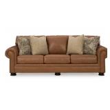 (56) Ashley Furniture Carianna Queen Leather Sofa Sleeper - Caramel