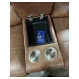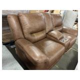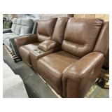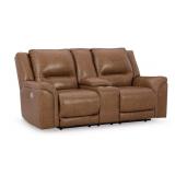 (61) Ashley Furniture Trasimeno Dual Power Leather Reclining Loveseat with Console - Caramel