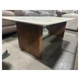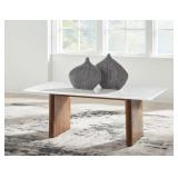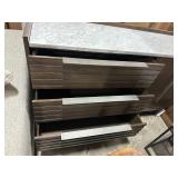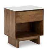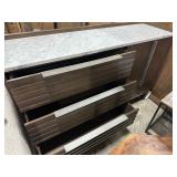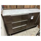 Clean lines lend sophistication and structure to the Arkenton dresser. Its complex rich grayish brown finish contrasts perfectly with a white marble top, while the streamlined silhouette features overlay slats to create visual interest. A metal base and bar pulls in a low-sheen steel finish add to this piece's contemporary vibe.