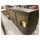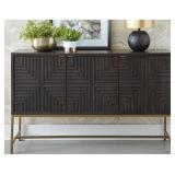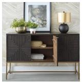 For fans of urban industrial design, the Starmore XL TV stand clearly steals the show. Its blend of acacia veneer and wood is beautified with an oiled walnut-tone finish for a highly contemporary aesthetic with grainy, earthy character. Infusion of dark bronze-tone metal takes the cool character to another level. And for your added viewing pleasure, this entertainment center is compatible with our electric fireplace inserts (sold separately).