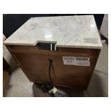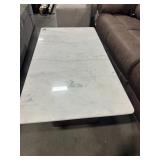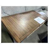 Frame with dark metallic finish; top with decorative laminate wood grain finish