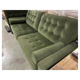 The Reveon Lakes sofa strikes the perfect balance between elevated and eclectic. Contemporary lines and a richly hued velvet upholstery keep things chic. Design details like button tufting and splay legs add mod flair. It’s sure to keep your living room luxuriously on trend—at a price that won’t break the bank.