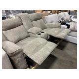 Cozy up in contemporary style. With super-plush fabric and padded arms, the Evereast Pass reclining loveseat with console levels up your day-to-day lounging. Sit back and relax with a simple pull tab motion. Thanks to this loveseat's inviting neutral hue, you have the flexibility to pair it with a variety of styles and colors. Comfort has never looked so chic.