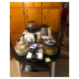 2 day sale liquidating all furniture, including Upholstered, wicker and rattan sets, w/d, refrigerator, chest freezer, cookware, linens, china, Consol piano, stereo, curio cabinets, bell, angel and doll collections, numbered limited edition framed prints by Ward Nichols, tools, air compressor, shop vac, table saw, table sander, 30+ft extension ladders, Grandfather clock, Swiss Cuckoo clock, antiques and home decor including window dressings and country curtains, and several pieces of Seagrove pottery from Cole's, Owens, Nichols and more. Antique kitchen cupboard, stroller, and chest of drawers. Camping equipment. Outdoor table and 4 chairs and 2 ottomans. Outdoor swing. |