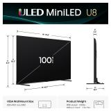 (11) Hisense 100" Class U8 Mini-LED ULED 4K UHD Google Smart TV (100U8QG, 2025 Model) - QLED, Native 165Hz, VRR 288, Up to 5000 Nits, HDR10+, Dolby Vision IQ · Atmos, IMAX Enhanced, 4.1.2 Ch Surround