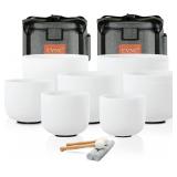 (145) 432HZ 6-12 Inch Set Of 7 PCS Frosted Chakra Quartz Crystal Singing Bowls for Sound Healing with 2 PCS Travel Carry Case Bag