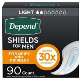 - DEPEND SHIELDS: 90 count of Depend Incontinence Shields for Men, light absorbency