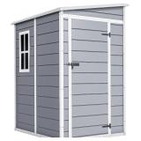 (200) DWVO 5x4ft Resin Outdoor Storage Shed with Floor, Large Waterproof Lockable Storage Shed with Window, Plastic Outside Tool Storage for Garden, Backyard, Patio, Lawn (Gray)