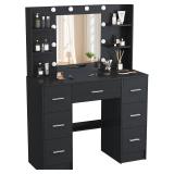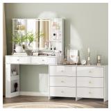 - 【Powerful Storage Capacity】Large capacity makeup desk has wider desktop, 9 drawers, and 6 open storage shelves to categorize items better. You can put cosmetics in different areas according to your habits and avoid the desktop being messy and can’t find cosmetics.