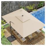 10x13FT Cantilever Outdoor Patio Umbrellas, Double Top Large Rectangle Umbrella, Heavy Duty 360° Rotation Offset Outdoor Sun Shade Umbrella for Garden Deck Pool Backyard Patio, Beige