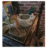 SUNDAY, MOST ITEMS ARE HALF PRICE!!!!!! This sale is at a home in the country. Not quite like any of our other sales. The home is a bit rough, but had many goodies for sale. This is a 3 bedroom home with two living rooms, kitchen, full basement, laundry room and large garage. The home is filled. There are 2 bedroom sets. One MCM and the other a solid maple set, mattresses included. Bedroom #1: MCM Bedroom Set with mattress & boxspring. The homeowner was a hunter. There is equipment for hunters. Portable toilet for being out in the wild, Outdoor clothing. Carhart overalls, Flannel Shirts, Coats Kitchen: Everything you need to set up a kitchen, Dishes, pots & pans, bakeware, serving bowls and platters. flatware, glasses, etc. Pyrex, Spice of Life Corningware Set There are over 40 crystal curets on display and probably over 25 or 30 frogs of different sizes and materials. There is also a collection of porcelain dogs as well as a collection of Goebel Redhead figurines. Bedroom #3 - Several boxes of cookbooks, Vintage Childs Roll Top Desk, Vintage Trunk, Women's leggings & tops in totes, HP Slim Desktop with Monitor & Printer, Oak Bookcase Den: Realistic Stereo System with Speakers, Record Player and Receiver, Vintage Settee, Christmas Decorations including vintage Christmas balls and ceramic tree. Vintage Wood Folding Table / Fireplace Screen. A carved bear out of a tree stump, Lenox Christmas Plate, White Milk Glass Pole Lamp, Clear Captions Phone 2 Large Etched Wall Mirrors Living Room: Lenox, Crocks, Cuckoo Clock, several Harry Potter items, Firelogs, Fenton, Approx. 15 pairs of Men's Jeans Size 36 & 38, Table of Knick Knacks and Collectibles. Belleek, Milk Glass, Oreck Air Purifier, Oak end tables and coffee table. 2 vintage trunks, several wood wall shelves. Bedroom#2: Linens & towels, Maple Bedroom Set with mattress & boxspring. Basement: Vintage sleds & lawn chairs & a bike. Large Wood Cupola, Small shop tools, fishing poles, reels & lores, small hand tools. In the garage we have a John Deere Riding Lawnmower, a large snowblower, an air compressor, walk behind left blower, generator, rototiller, and the normal garage finds like ladders, shovels, rakes, etc. There is also a Wheel Horse Garden Tractor with attached plow and other attachments. There is so much to see in each room. Please come check it out.