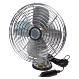 Improve airflow and make your ride more comfortable with this 12V metal fan with a chrome finish. It features a two speed high and low operation and a 10-foot power cord that plugs directly into a 12V power port. The fan includes all the hardware needed to mount on either the top or side panel of the dash and has a swivel-ball base.
