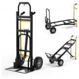 3 in 1 Hand Truck, Convertible Hand Truck with 4 Wheels & Rubber Handle
