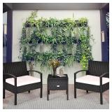 Costway 3PCS Patio Rattan Furniture Set Storage Table Cushioned Sofa Deck Red\Turquoise\White