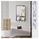 Wall Bathroom Mirror with Shelf Hooks Sturdy Metal Frame for Bedroom Living Room