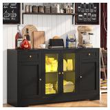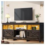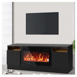 (121) Garvee Modern Entertainment Center with Storage Cabinet Up to 75"TV, Modern TV Stand for Living Room, Black (Not Include Fireplace)