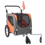 Dog Bike Trailer, 2-in-1 Pet Stroller Cart Bicycle Carrier, Easy Folding Cart Frame with Quick Release Wheels