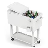 80 Quart Portable Outdoor Patio Rolling Cooler Cart White