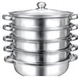 Stainless Steel Steamer Set with 5 Tier Steamer Pans Tier, Multi-Layer Cookware Pot for Steaming, Boiling, and Cooking (Super Thick)