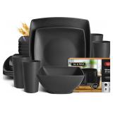 - COMPLETE SET: 16-piece square dinnerware set Include 4 x 10.6'' dinner plates , 4 x 8.6'' salad plates, 4 x 6" snack bowls and 4 x 13.5 oz tumblers with flatware. Bright color bring you a fresh look and make it easy to match your existing flatware.
