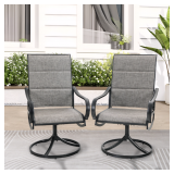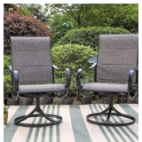 (159) Black Swivel Padded Textilene Metal Outdoor Dining Chair with Curve Arms (2-Pack)