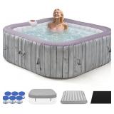 73" Inflatable Hot Tub,4-6 Person,Portable Outdoor Spa with 130 Soothing Bubble Jets,Control Panel,Insulated Cover and 6 Replaceable Filters,Smart Heating,110-120V Input (Square)