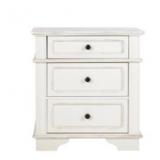 Solid Wood Nightstand with Outlets & USB Ports, 3 Drawer Traditional Cottage Bedside Table, Wash White