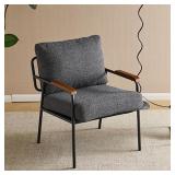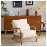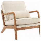 Accent Chair with Arm, Mid-Century Modern Oak Armrest Upholstered, Off-White Indoor Single Lounge Chair