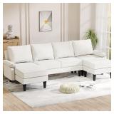 U Shaped Sectional Couch, Convertible Modular Sectional Sofa with Chaise & Ottomans, Modern 6 Seat U Shaped Couches for Living Room Apartment, Beige (BOX 1 OF 3 ONLY)