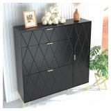 (COLOR IS WHITE)Large Shoe Cabinet, 43.3" W x 47.2" H Free Standi1ng Tipping Bucket Shoes Cabinets, Storage Cabinet with 3 Flip Drawers and Shelves, Narrow Rack for Entryway, Modern Organizer