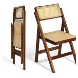 VINGLI 2 Pack Rattan Wooden Folding Chair, Dining Folding Chair with 360° Swivel Backrest, Sturdy Rubberwood Frame and Rattan Woven Seat and Back, Walnut, Set of 2
