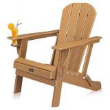 VINGLI Plastic Folding Adirondack Chair with Cup Holder, 100% Recyclable Waterproof HDPE Material, Comfortable 380lb Weight Capacity for Outdoor Pool Patio Lounge Chair Lawn Furniture Firepit (Teak)