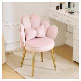 VINGLI Petal Makeup Vanity Chair with Back,Flower Cute Girls Desk Chair Comfy No Wheels,Modern Dining Chair,Small Accent Chair with Adustable Gold Legs&Bow Pillow for Home Office,Bedroom,Velvet,Pink