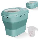 - 🍚【Extra-large & Space Saver】Extra-large food storage container ideal for storing many things.Unfolded size:17.7"L x 12.9"W x 14.7"H, it has a capacity of 25L (23Qt) and can store about 50 lbs of rice or 30 pounds of pet food; Folded size:17.7"L x 12.9"W x 6.2"H , it has a capacity of 6.5L (6Qt) and can store about 20 lbs of rice or 13 pounds of pet food. When you need to put it away, you just need to press it down hard to fold it up to save your space.