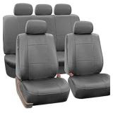 FH Group Classic PU Leather Full Set Car Seat Covers, Airbag Compatible and Split Bench with Gift - Universal Fit for Cars Trucks & SUVs (Solid Gray)