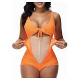 Women's Tummy Control Swimsuit SIZE MEDIUM One Piece Slimming Bathing Suit Cutout Tie Knot Front Bikini Push Up Swimwear