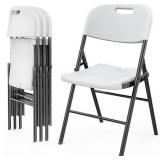 VINGLI Folding Chairs, Heavy Duty Foldable Chair Portable HDPE Plastic Seat with Steel Frame for Indoor Outdoor Dinning Party Wedding School Use, White, 4 Pack