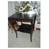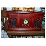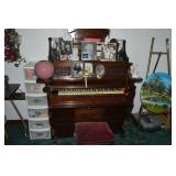 Antique Furniture, Glassware, and other Collectibles Petite Oak Triple Curved glass china cabinet w/ lions heads and paw feet Nice Oak Secretary bookcase Very Unusual Mechanical Orguinette Co. N.Y. Music Roll player Fancy Victorian parlour organ Oak Parlour Table Athens Anniversary Clock American Fostoria cake stand Coin pattern bowl JoHann Haviland Floral China Several pieces of good pattern glass Set of White China w/ gold band Large China Soup Tureen White Pitcher and bowl China Creamer and Sugar Large Tole painted Circular Saw blade Record Albums 3 Antique Oil Lamps Unusual Child Sled Sno-ter