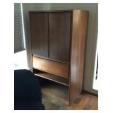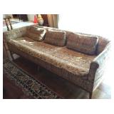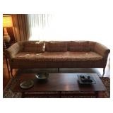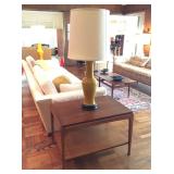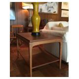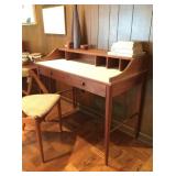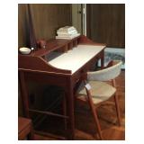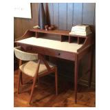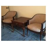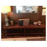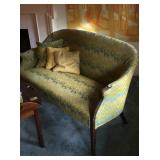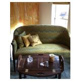 Here's a lucky find for some of you Mid Century lovers.. a clean and simple king size headboard in teak! Great lines yet sophisticated.. two great mid century end tables accompanied by some great period artwork. And wholly oak roll top desks! We got a big one for you this week!! This is one beautiful and solid piece of furniture for you all who love something made built to last! Tons of storage and cubbies AND in terrific shape for it's age! Bring a friend (or three) to give a hand because you'll need some help! A great accent side table piece to match with sliding work top, a pair of club chairs to an upholstered settee with Chippendale style coffee table to a fantastic mid century slat bench.. check out this master for yourself!