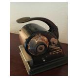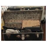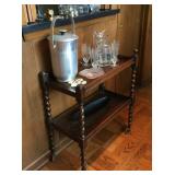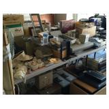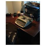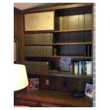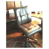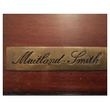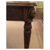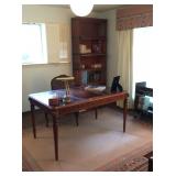 A Maitland Smith desk is the feature of this office room.. with three drawers and leather inlay it will be that great find you'll tell everyone about! Two antique lawyer Barrister bookcases flank the room along with some other great office necessities.. a rolling book cart and a Multiplex slide viewer with storage, various paperbacks and hardbacks to a custom wool 11 color rug.. very subtle.