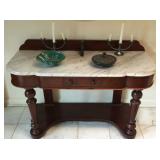 Classic pieces great for any home!! If you have the love of that simple elegance of great antique pieces pause here for a moment to admire not only the fantastic art but the marble top entry table, unique umbrella stand with drip tray or a miniature bookcase with collectible books and literature pieces. Art in so many styles throughout the home.. watercolors, collographs, lithographs, collages and etchings.. stop and reflect with each piece for a moment!