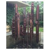 Custom sculpture by Mary 'Iron Eyes Isreal' (Hatzenbuehler) Hatz (multi positional; circa 1970's) featured in the courtyard.. stunning! This custom piece was done especially for the homeowner after moving in this splendid house. Great for any Brutalist style lover!! Various planting pots to outdoor seating.. come out here and enjoy the peace and beauty of the back courtyard!! Ahhh...! Love it!