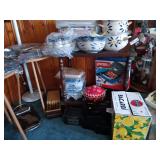 Estate and "real" garage sale with items collected over 70 years. Antique, vintage, and modern furniture of all types: China and curio cabinets, sofas, desks, trunks, chifferobs, cedar chest, lamps, 3 piece mahogany bedroom set, full brass bed, king size mirrored bed set, dining room table set for 6, kitchen set for 4, freestanding Amish wooden console heater, antique Singer wrought iron based table, antique adult potty chair, vintage camelback chair, wooden reclining chair, leather recliner, Samsung refrigerator, artificial Christmas tree, Christmas linens and ornaments, ceramics, lots of fine crystal, lots of fine China, kitchenware, stoneware, ironware, art and paintings, electronics, jewelry, large collection of brass items, antique dolls collection, Barbie doll collection, angel collection, Santa figurine collection, Disney collection (VHS tapes, toys, books), Town & Country mink coat, 1954 vintage wedding dress with veil, and antique metal toys. |