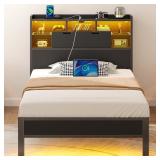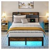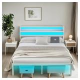 Full Bed Frame with Storage Charging Station Headboard, Smart LED Light, Metal Platform Bed No Box Spring Required, Easy Assembly, Noise Free