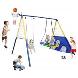 - HEAVY-DUTY CONSTRUCTION: We designed this climbing fort with a 1" powder-coated steel frame. The platform has durable mesh fabric, which holds a maximum of four children weighing up to 105 lb. each. The set comes with ground stakes for stability.