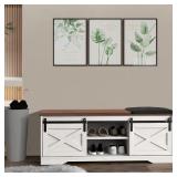 - Sliding Barn Door Bench: The sliding doors of the shoe storage bench allow you to hide your shoes and belongings nicely in one or two compartments while displaying the items you want to display in the other compartments, while adding a stylish touch to this cabinet.